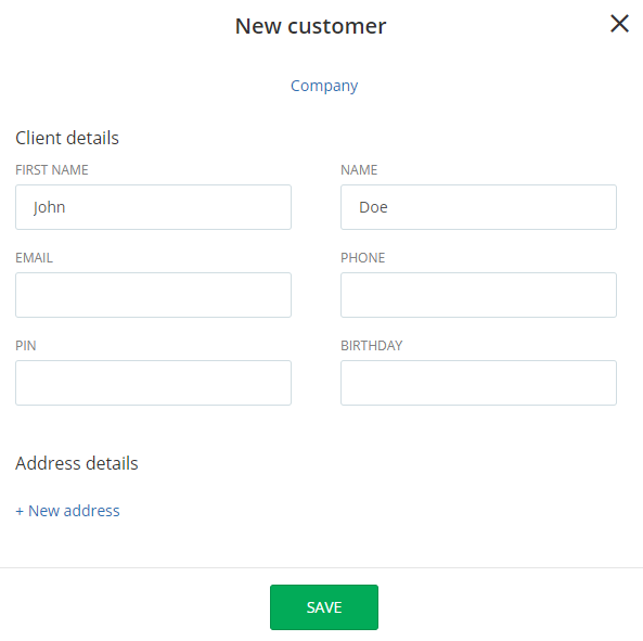 3. To be able to save a client, you need to add at least a name + phone or e-mail adress.